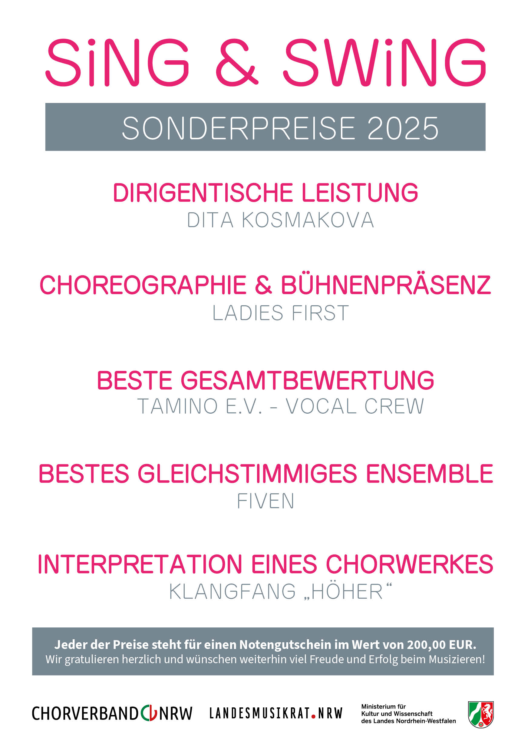 Akustik und sind genau auf die Bedürfnisse von Instrumentalisten und Sängern zugeschnitten. Das Sing uns